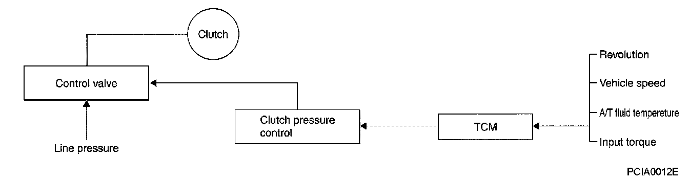 Shift ControlThe clutch pressure control solenoid is driven by the signals from the switches and sensors. Thus, as the clutch pressure is adjusted to be appropriate to the engine load state and vehicle driving state. It becomes possible to finely control the clutch hydraulic pressure with high precision and a smoother speed change characteristic is attained.