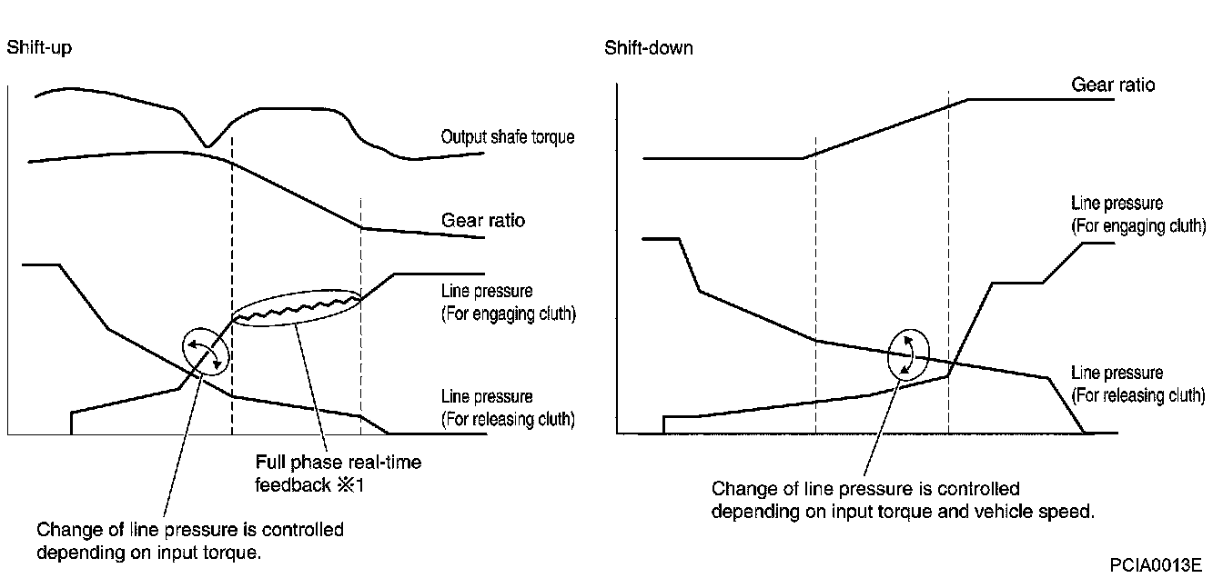 *1: Full phase real-time feedback control monitors movement of gear ratio at gear change, and controls oil pressure at real-time to achieve the best gear ratio.
