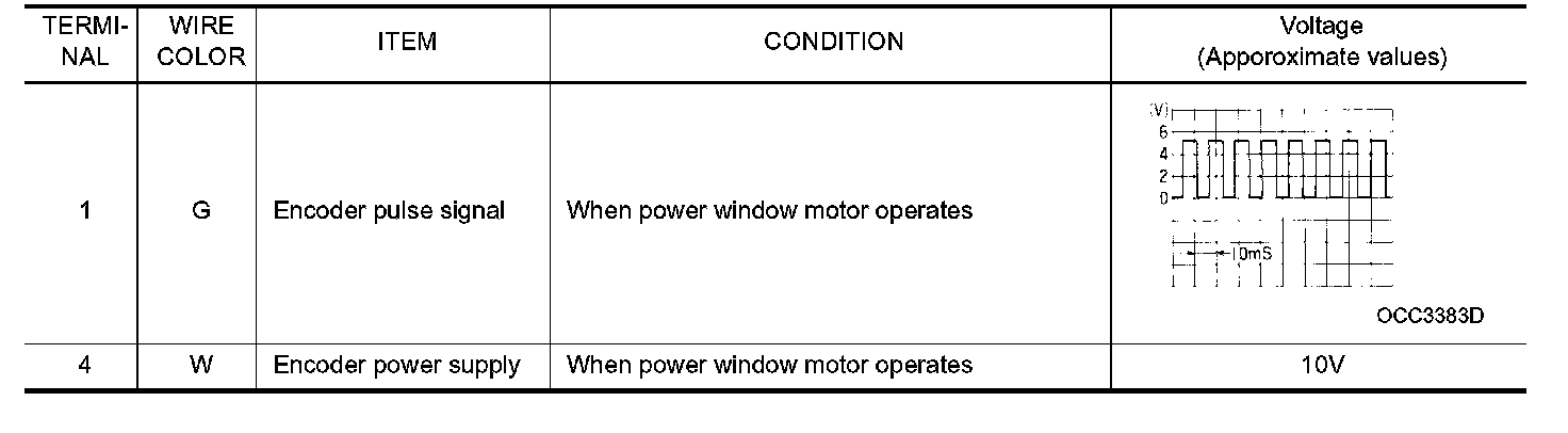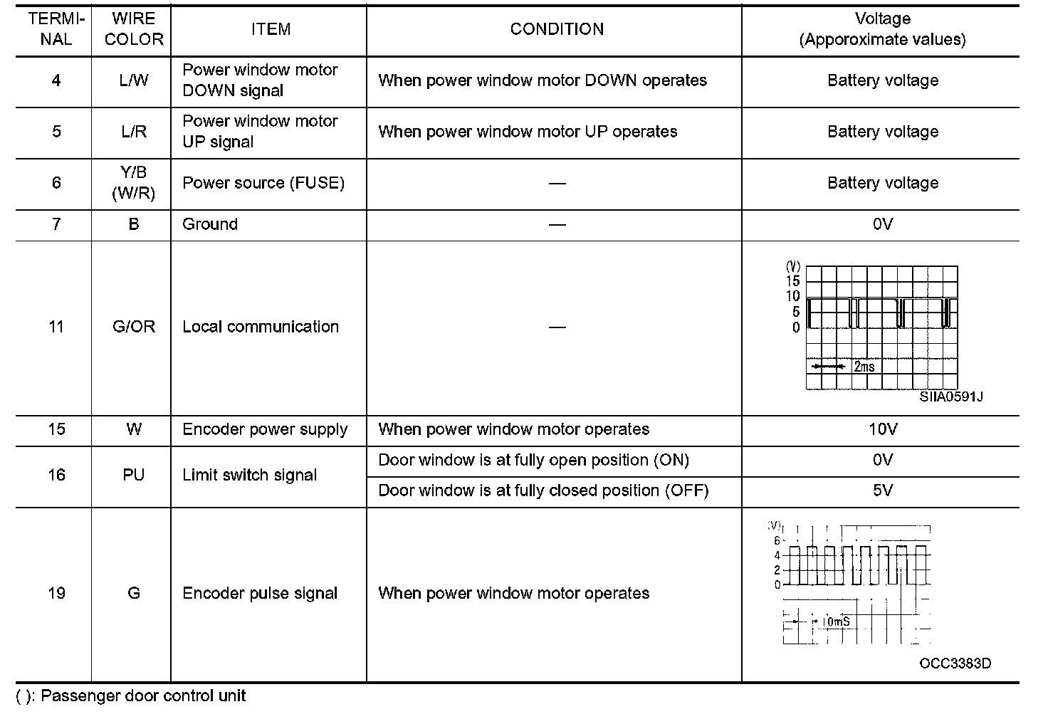 Terminals And Reference Value For Passenger, Rear LH, RH Door Control Unit:
