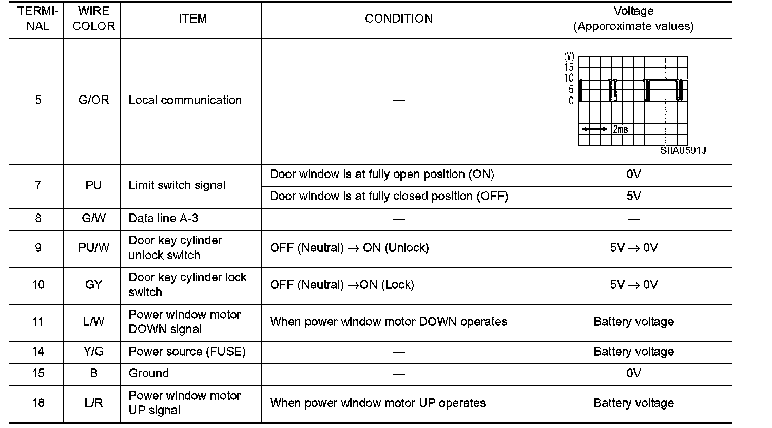 Terminals And Reference Value For Driver Door Control Unit Part 2: