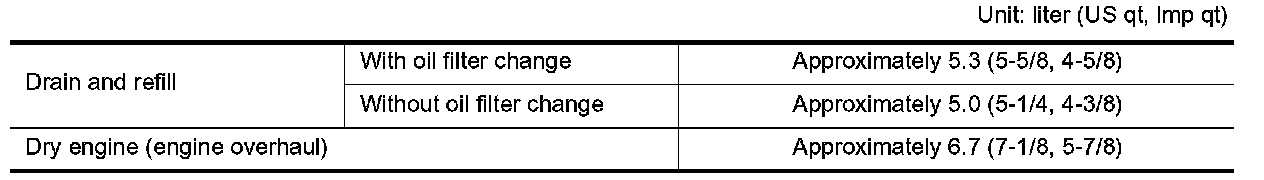 NOTE: The refill capacity depends on the oil temperature and drain time. Use these specifications for reference only.