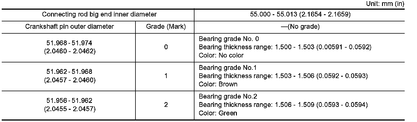 Selection Table of Connecting Rod Bearing: