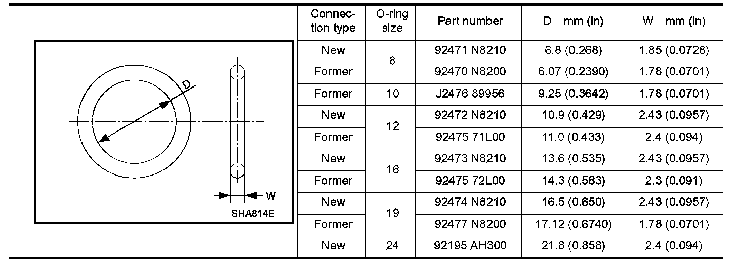O-ring Part Numbers And Specifications: