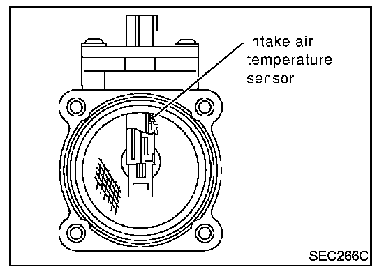 The mass air flow sensor is placed in the stream of intake air. It measures the intake flow rate by measuring a part of the entire intake flow. It consists of a hot film that is supplied with electric current from the ECM. The temperature of the hot film is controlled by the ECM a certain amount. The heat generated by the hot film is reduced as the intake air flows around it. The more air, the greater the heat loss.