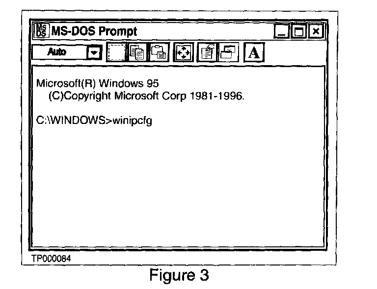 B. When the MS-DOS Prompt window appears, after C:\WINDOWS> type: winipcfg (see Figure 3).