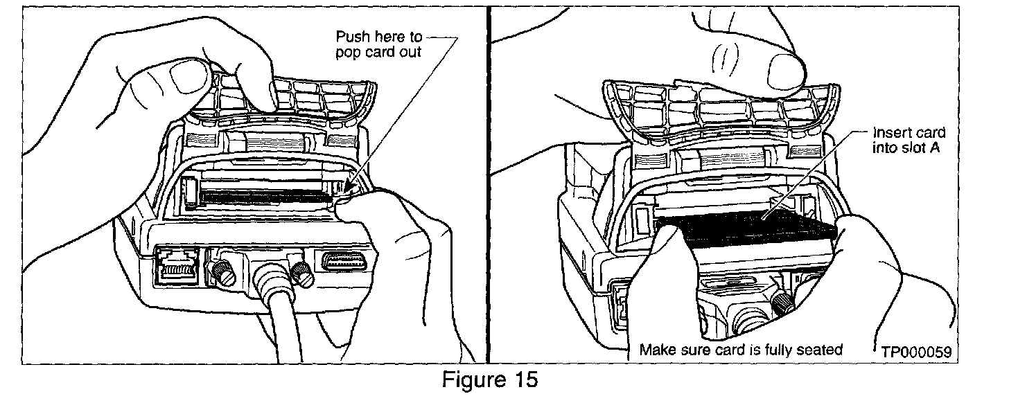 14. Remove the ECM Reprogramming card from slot A of CONSULT-II and install the Diagnostics (blue) card into slot A (see Figure 15).