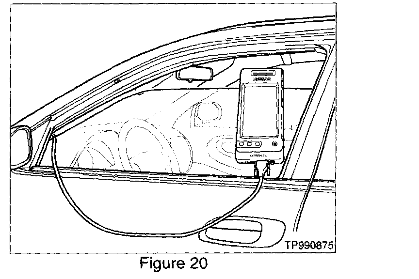 22. Roll down the driver's window part way, exit the vehicle, close the door and hang the CONSULT-II unit on the outside of the window (see Figure 20).