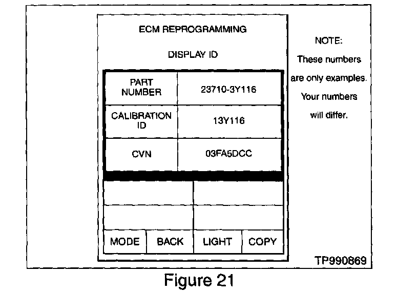 23. Press "CHECK CURRENT ECM P/N" to confirm the ECM part number on the vehicle to be reprogrammed (see Figure 21).