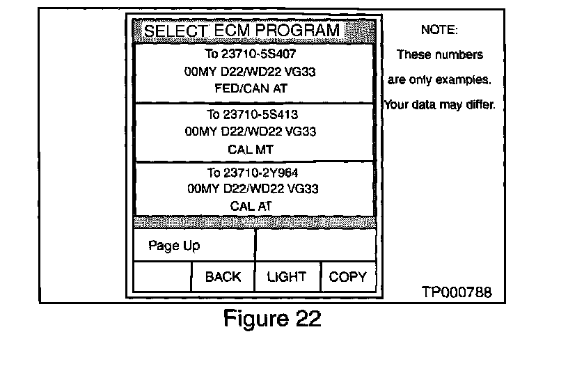 26. Select the correct ECM program (the number you wrote down in step 7D, in this procedure) to install from the choices on the CONSULT-II screen (see Figure 22).