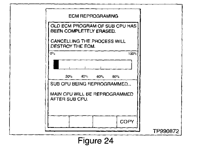 28. Press "START". After a moment the window shown in Figure 24 will appear. CONSULT-II will now turn off its screen backlight and reprogram the ECM.