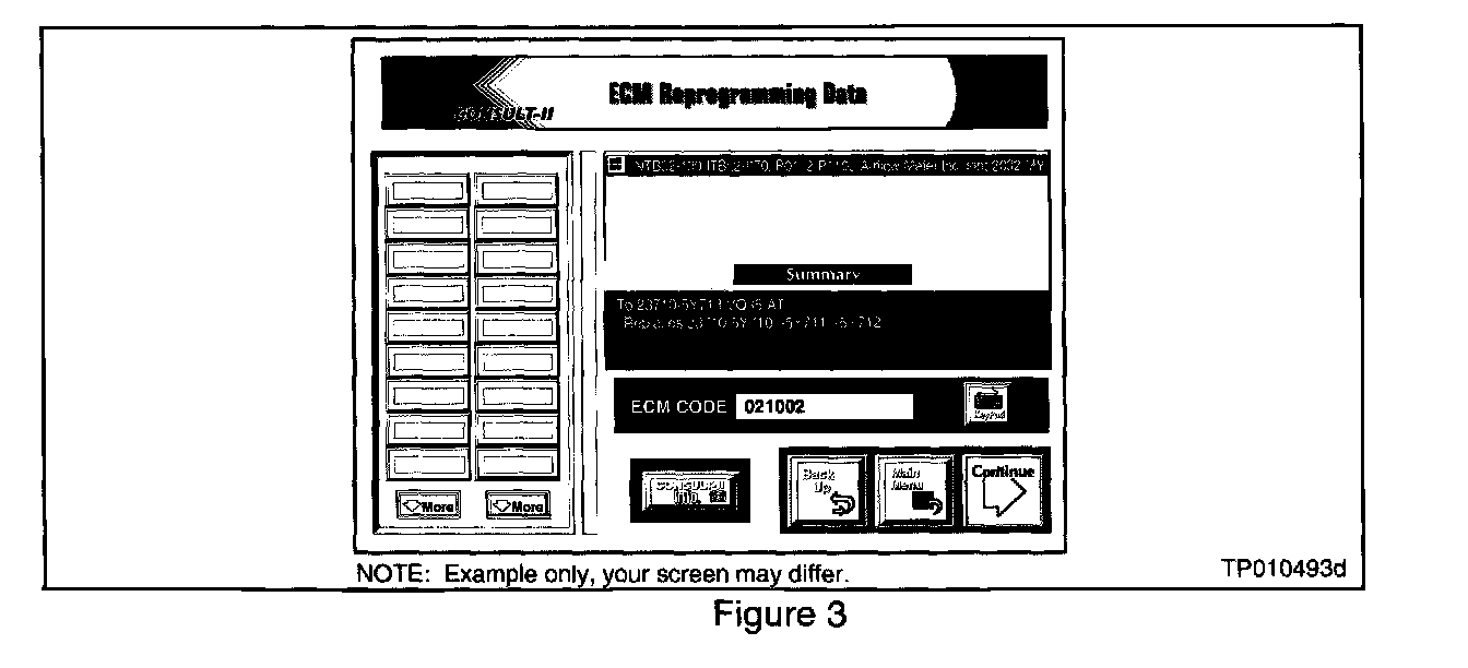 4. Click the "Continue" button on the ECM Data Reprogramming screen (see Figure 3) to proceed to CONSULT-II setup.