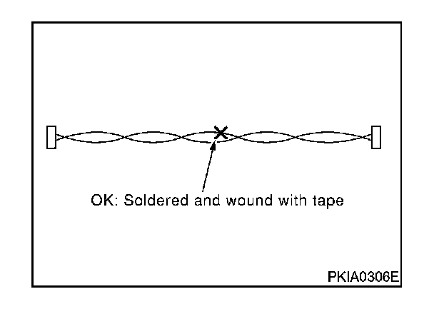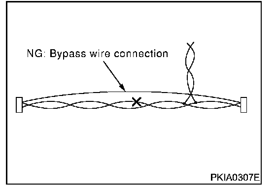 Do not perform bypass wire connections for the repair parts. (The spliced wire will become separated and the characteristics of twisted line will be lost.)