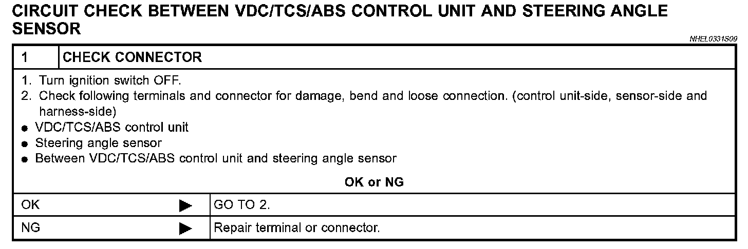 Circuit Check Between VDC/TCS/ABS Control Unit And Steering Angle Sensor (EL-467):