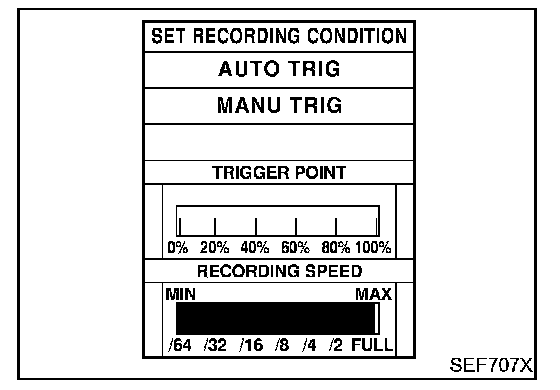 The recording time after the malfunction detection and the recording speed can be changed by "TRIGGER POINT" and "Recording Speed". Refer to CONSULT-II OPERATION MANUAL.