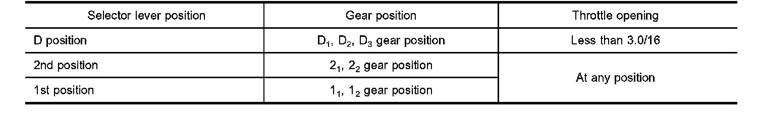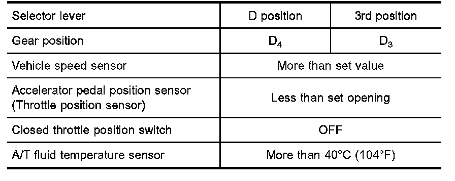 ^ The line pressure is reduced below 60°C (140°F) to prevent shifting shock due to low viscosity of automatic transmission fluid when temperature is low.