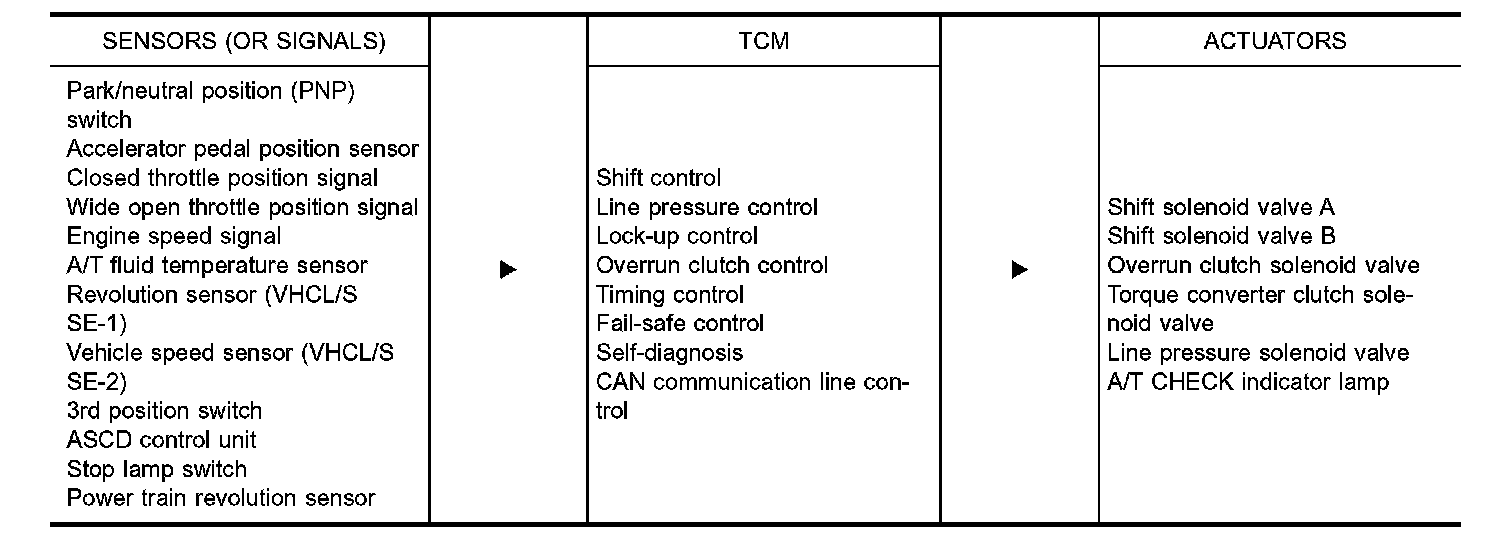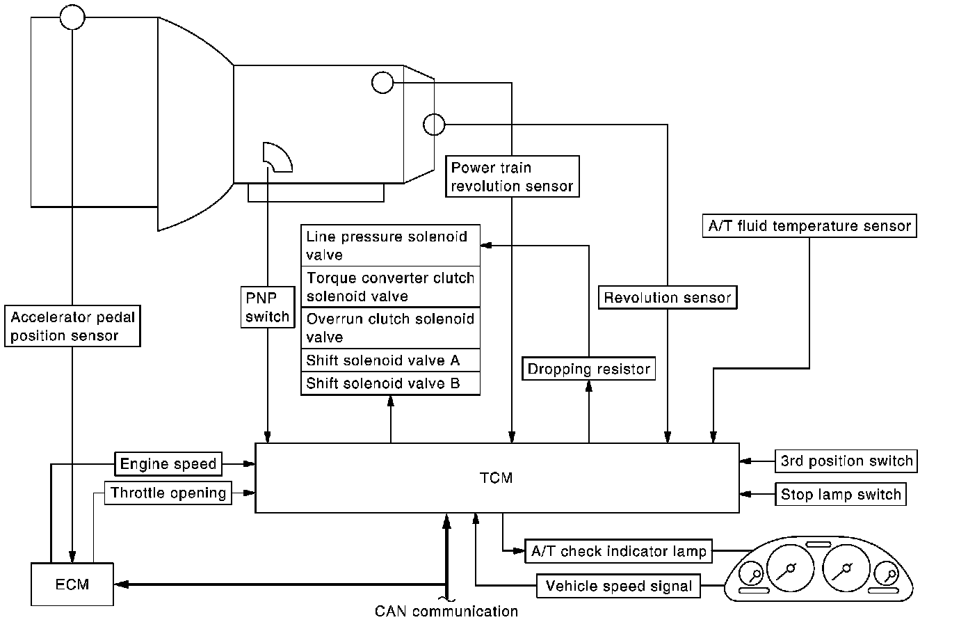 ^ Determine required line pressure, shifting point, lock-up operation, and engine brake operation.