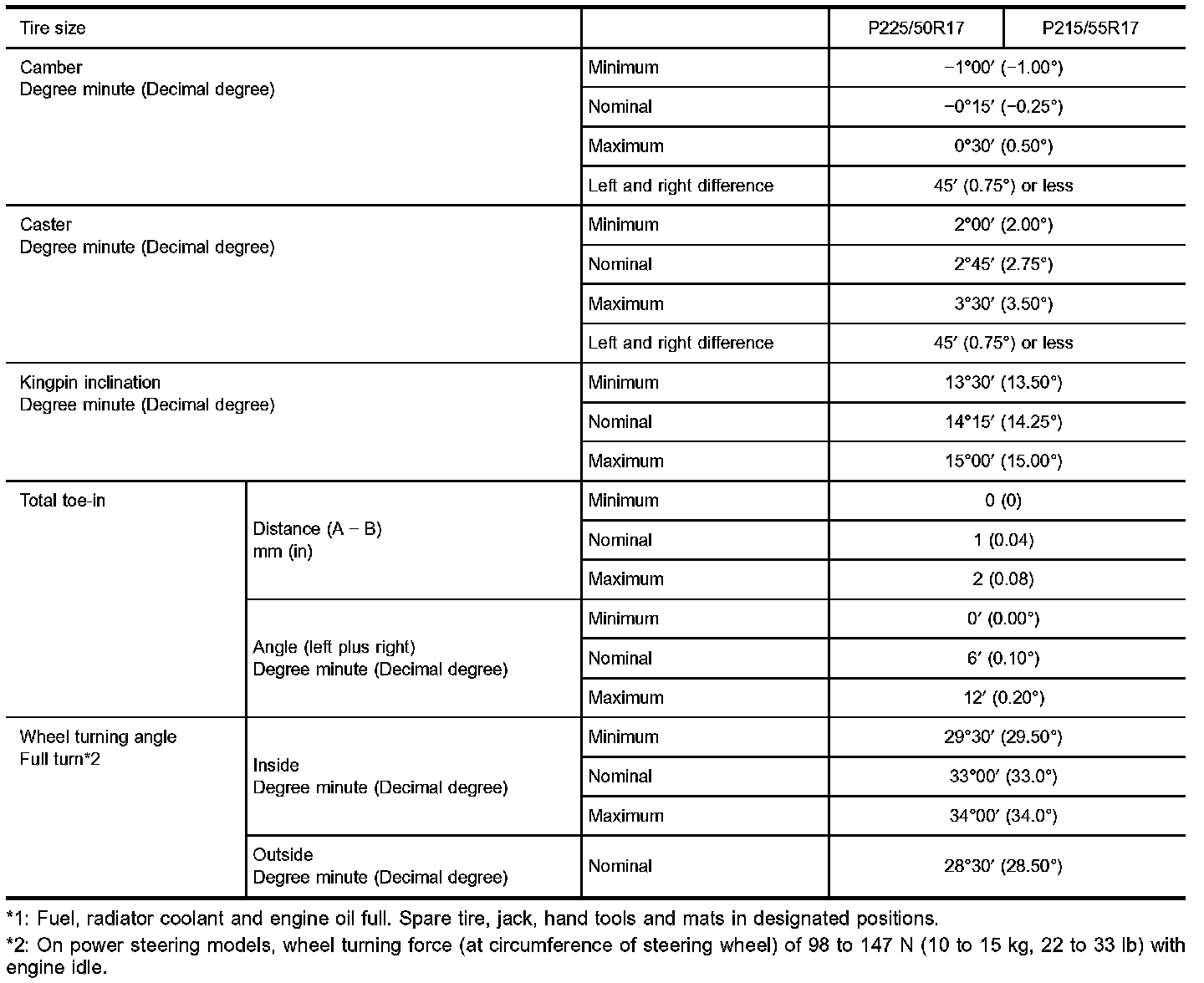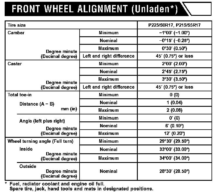 FRONT SUSPENSION / FRONT WHEEL ALIGNMENT (UNLADEN *1):