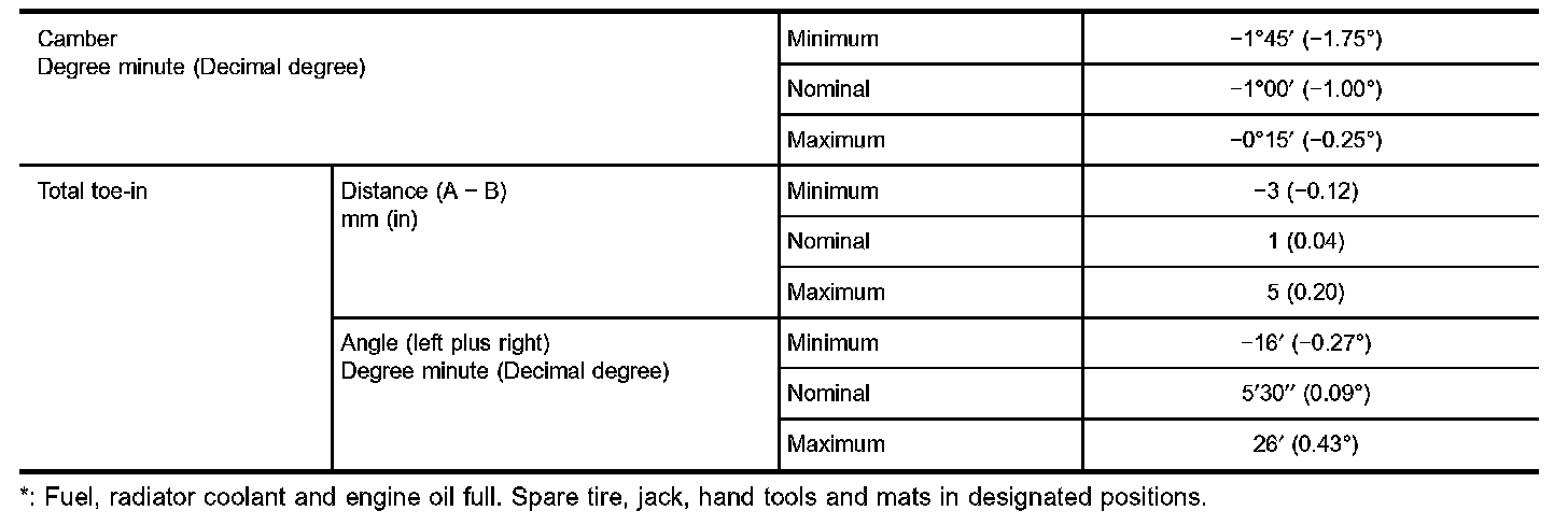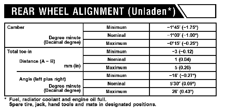 REAR SUSPENSION / REAR WHEEL ALIGNMENT (UNLADEN*):