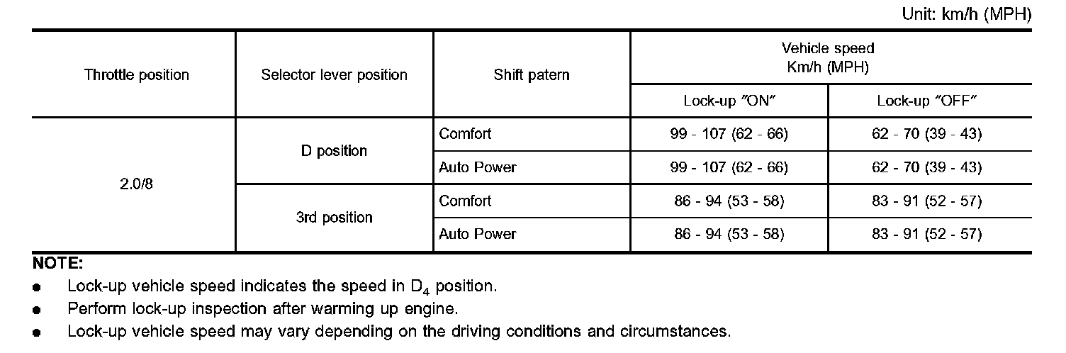 VEHICLE SPEED WHEN PERFORMING AND RELEASING LOCK-UP