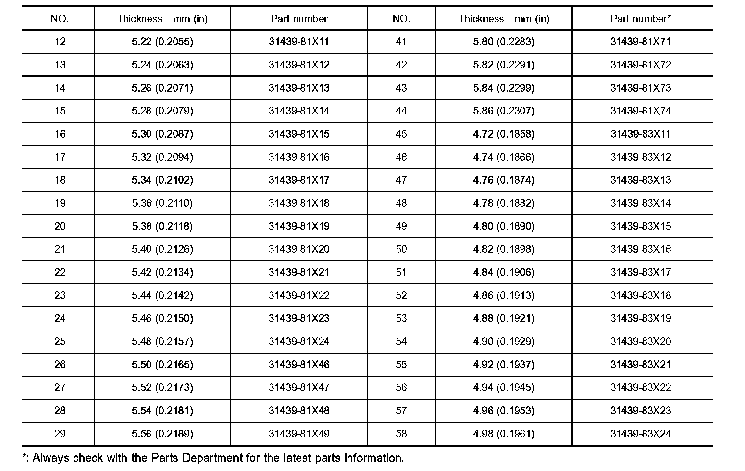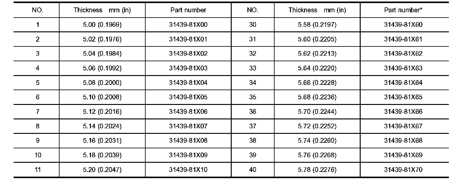 DIFFERENTIAL SIDE BEARING PRELOAD ADJUSTING SHIMS