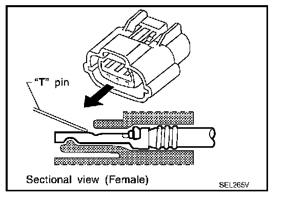 Standard type (not waterproof type) connector should be probed from harness side with "T" pin.