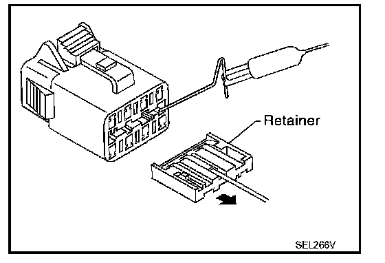 - Some connectors do not have a notch above each terminal. To probe each terminal remove the connector retainer to make contact space for probing.