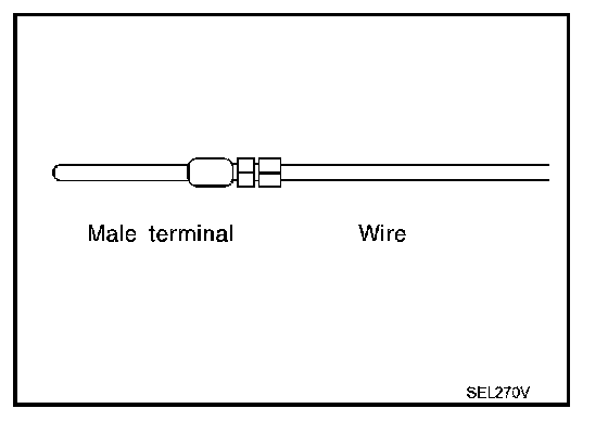 1. Assemble a male terminal and approx. 10 cm (3.9 in) of wire. Use a male terminal which matches the female terminal.