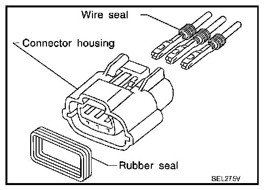 The wire seal must be installed on the wire insertion area of a waterproof connector. Be sure that the seal is installed properly.