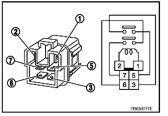 Check continuity between relay terminals 3 and 5, 6 and 7.