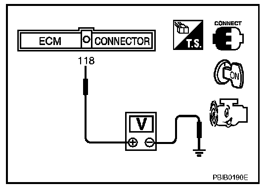 3. Check voltage between ECM terminal 118 and ground under the specified conditions.