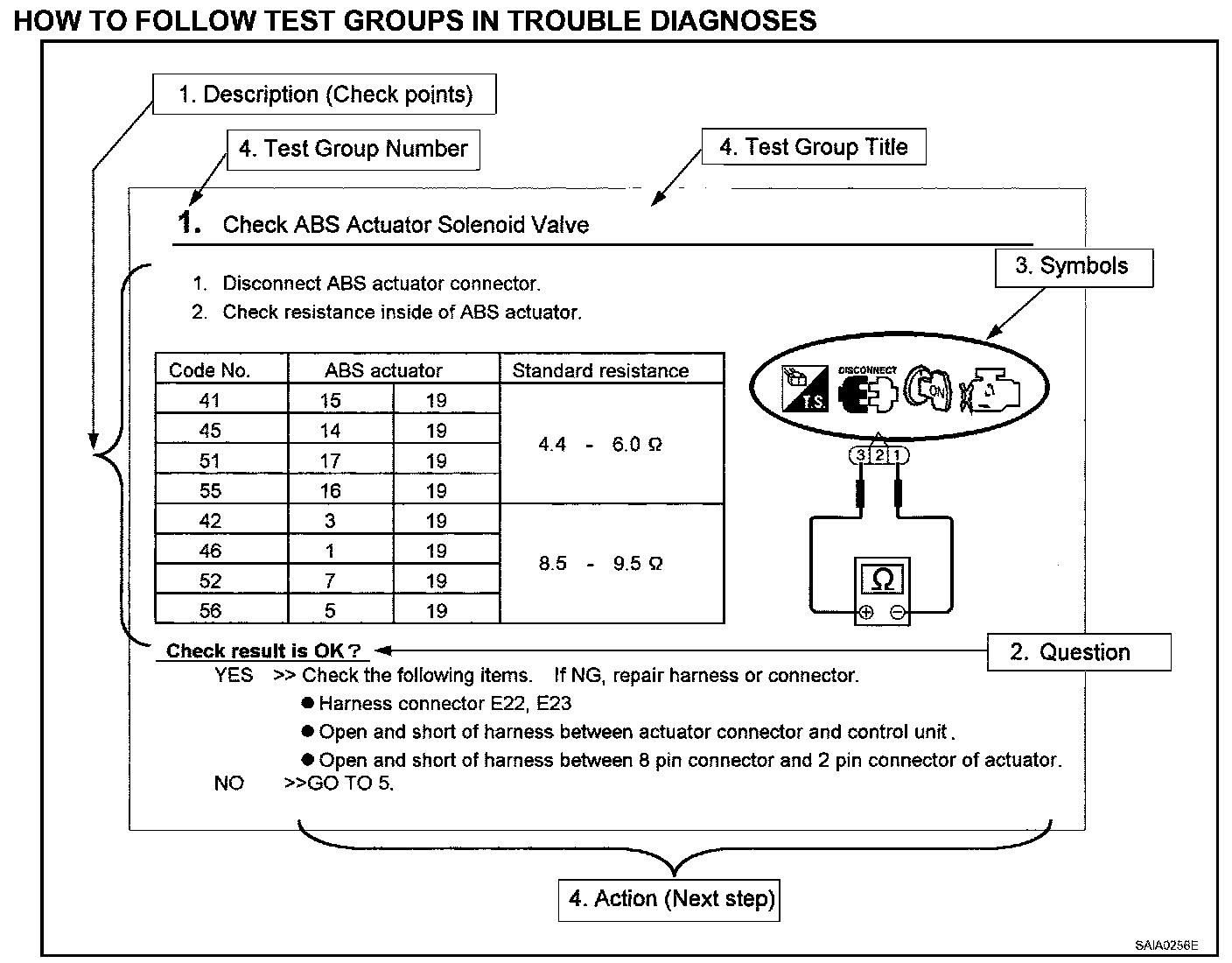 Next action for each test group is indicated based on result of each question. Test group number is shown in the left upper portion of each test group.