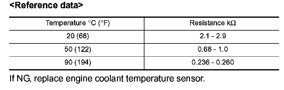 2. If NG, replace engine coolant temperature sensor.