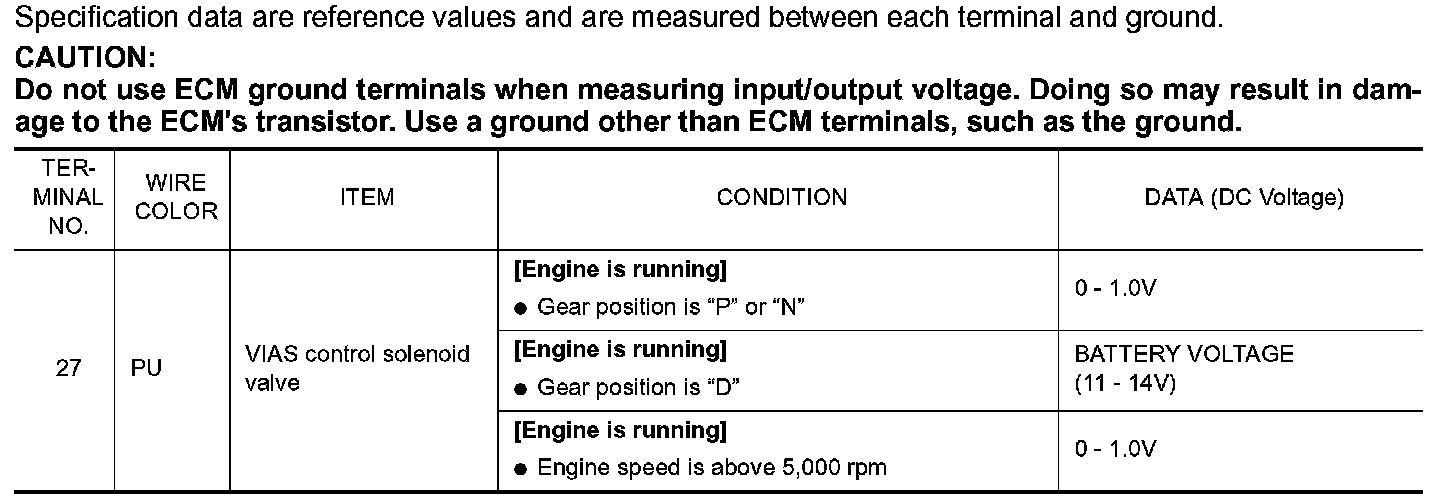 Control Module Pinout Values
