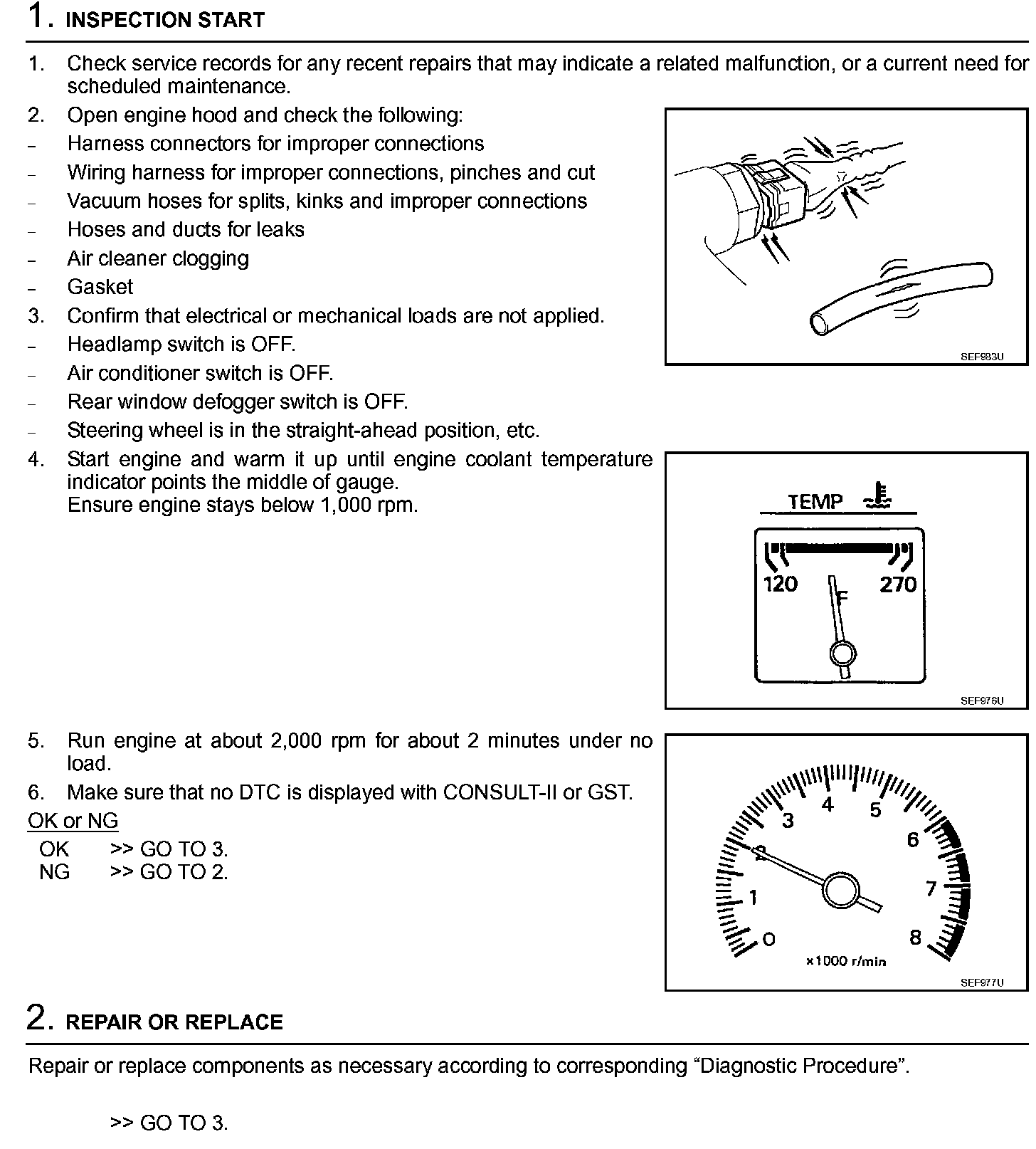 2. On air conditioner equipped models, checks should be carried out while the air conditioner is "OFF".