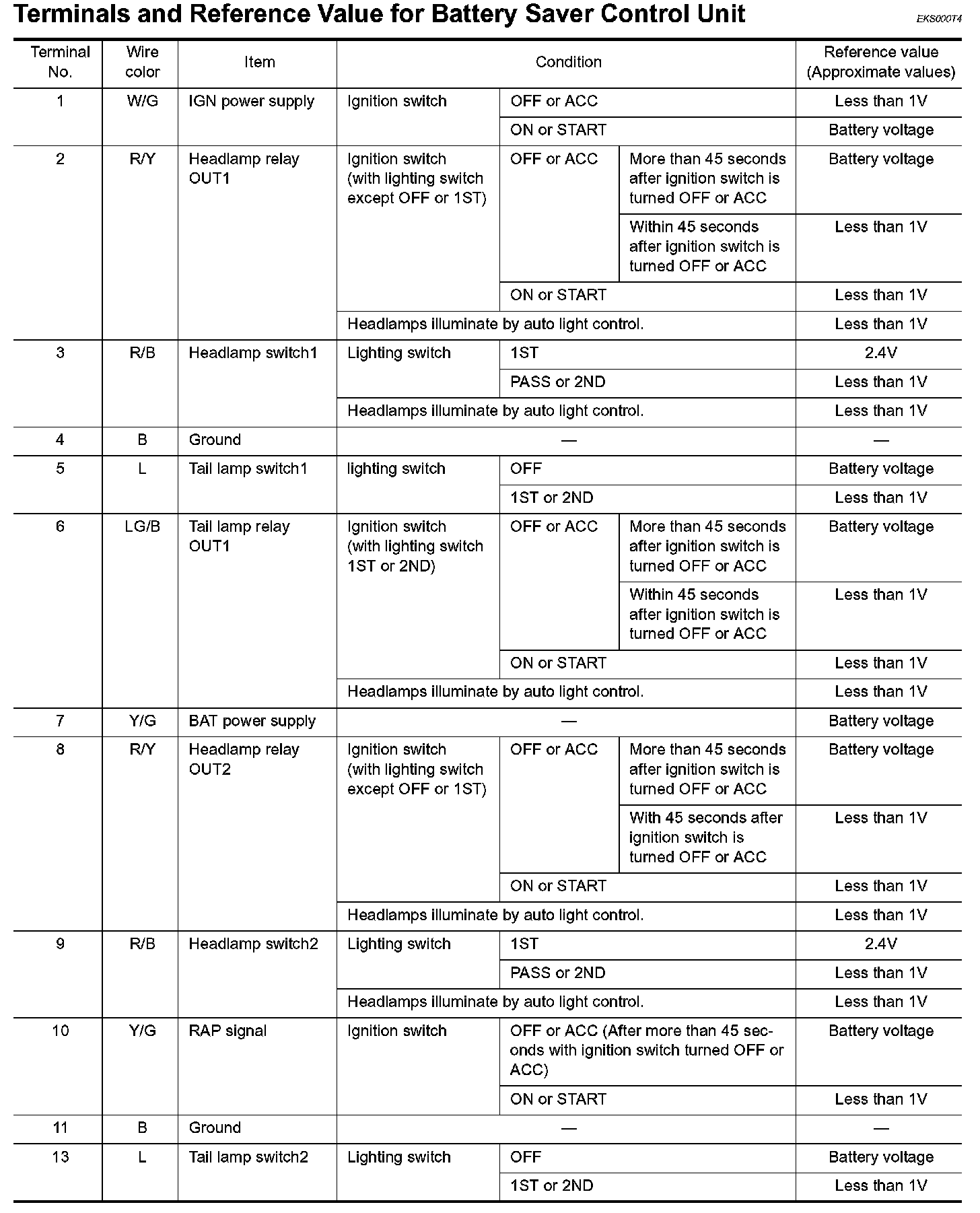 Terminals And Reference Value For Battery Saver Control Unit Part 1: