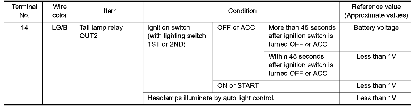 Terminals And Reference Value For Battery Saver Control Unit Part 2: