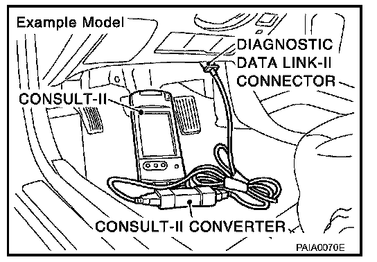 1. Connect CONSULT-II and CONSULT-II CONVERTER to the data link connector.