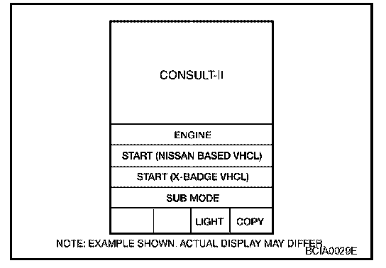 3. Touch "START (NISSAN BASED VHCL)" or system shortcut (eg: ENGINE) on the screen.
