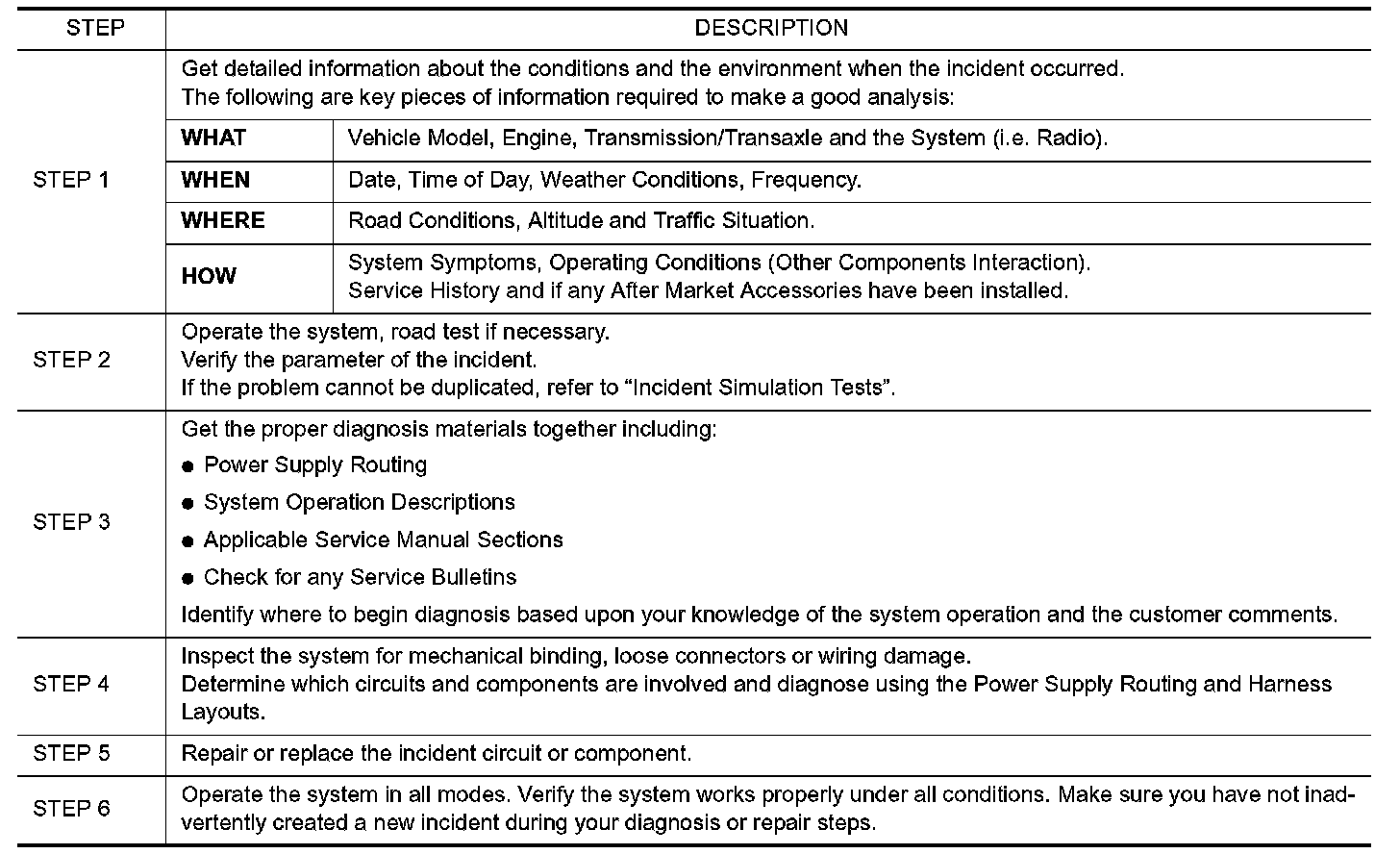 Sometimes the symptom is not present when the vehicle is brought in for service. If possible, re-create the conditions present at the time of the incident. Doing so may help avoid a No Trouble Found Diagnosis. The following section illustrates ways to simulate the conditions/environment under which the owner experiences an electrical incident.