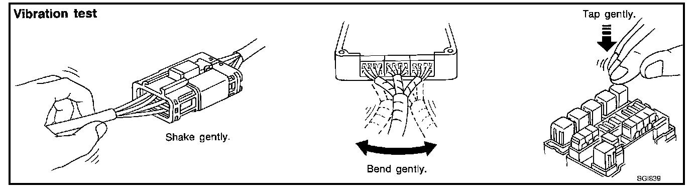 Determine which connectors and wiring harness would affect the electrical system you are inspecting. Gently shake each connector and harness while monitoring the system for the incident you are trying to duplicate. This test may indicate a loose or poor electrical connection.