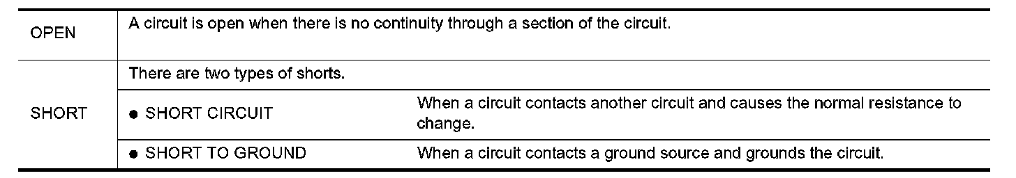 The continuity check is used to find an open in the circuit. The digital multimeter (DMM) set on the resistance function will indicate an open circuit as over limit (no beep tone or no ohms symbol). Make sure to always start with the DMM at the highest resistance level.