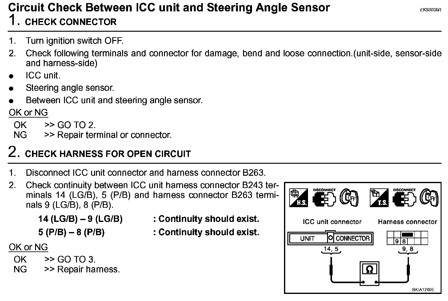 Circuit Check Between ICC unit and Steering Angle Sensor