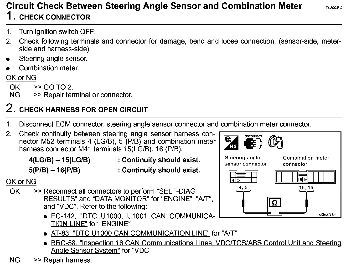 Circuit Check Between Steering Angle Sensor And Combination Meter: