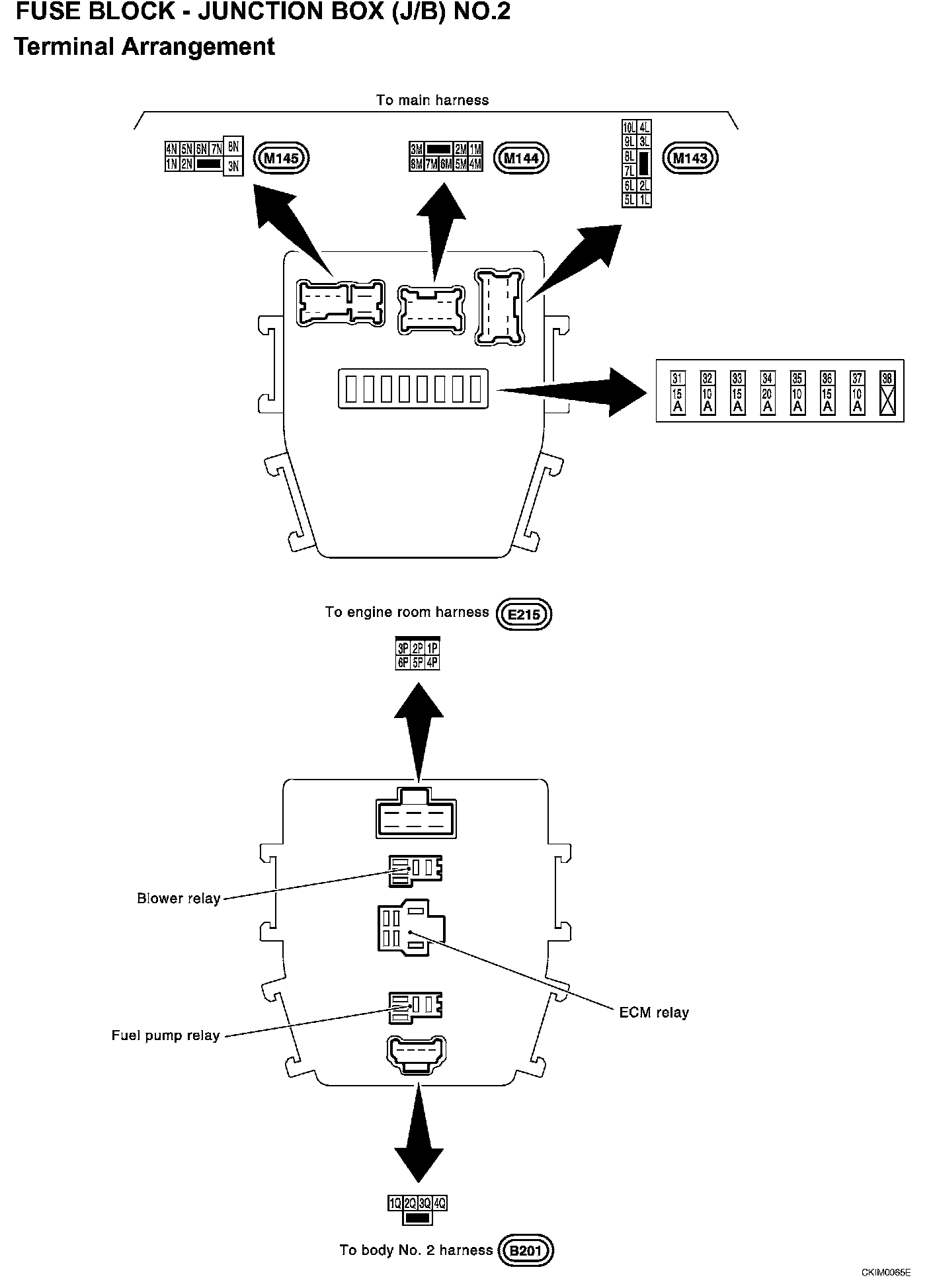 Fuse Block-Junction Box (J/B) No.2 - Terminal Arrangement: