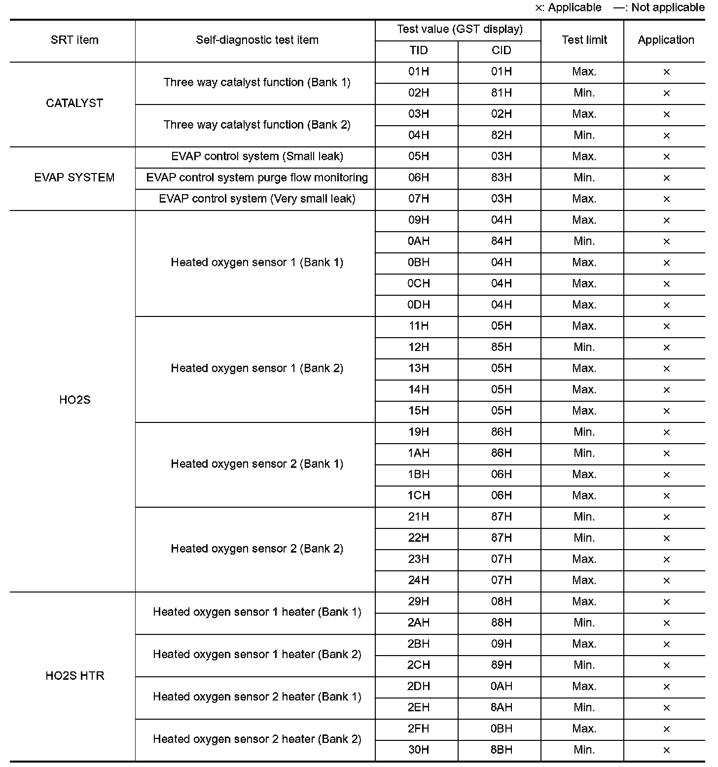 The test value is a parameter used to determine whether a system/circuit diagnostic test is "OK" or "NG" while being monitored by the ECM during self-diagnosis. The test limit is a reference value which is specified as the maximum or minimum value and is compared with the test value being monitored.