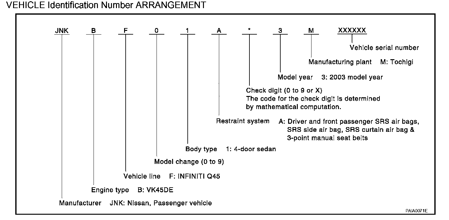 VEHICLE Identification Number ARRANGEMENT