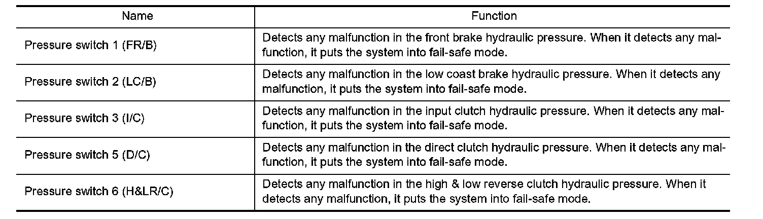 FUNCTION OF PRESSURE SWITCH