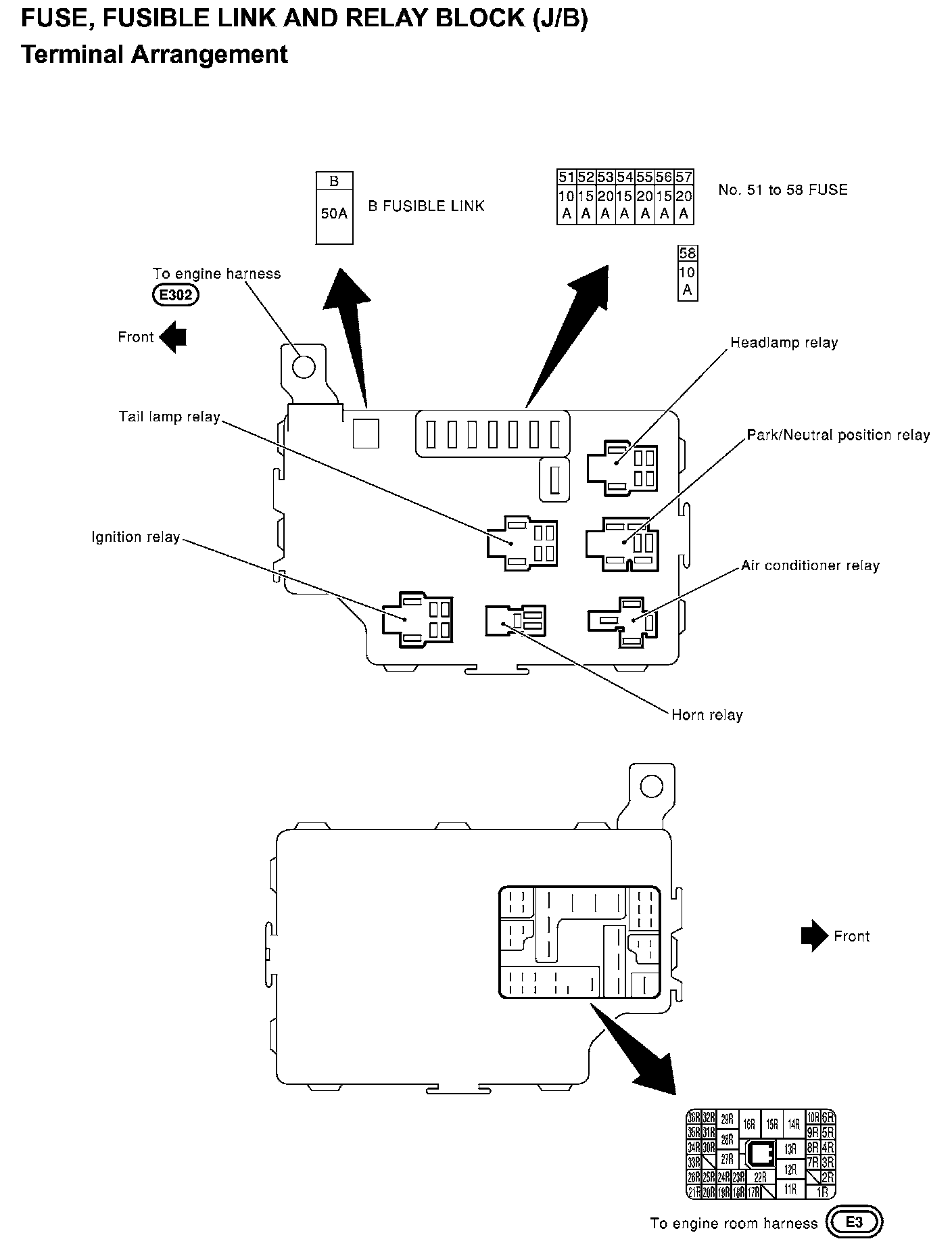 Fuse, Fusible Link And Relay Block (J/B) - Terminal Arrangement: