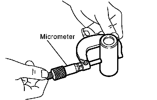 Measure the inner diameter of piston pin bore with an inside micrometer.