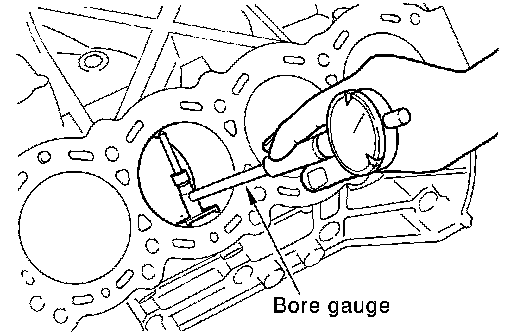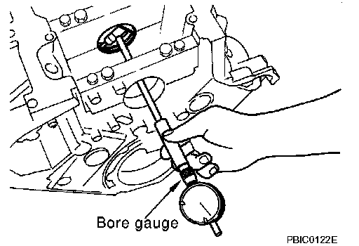 ^ Using a bore gauge, measure the inner diameter of the main bearing housing.